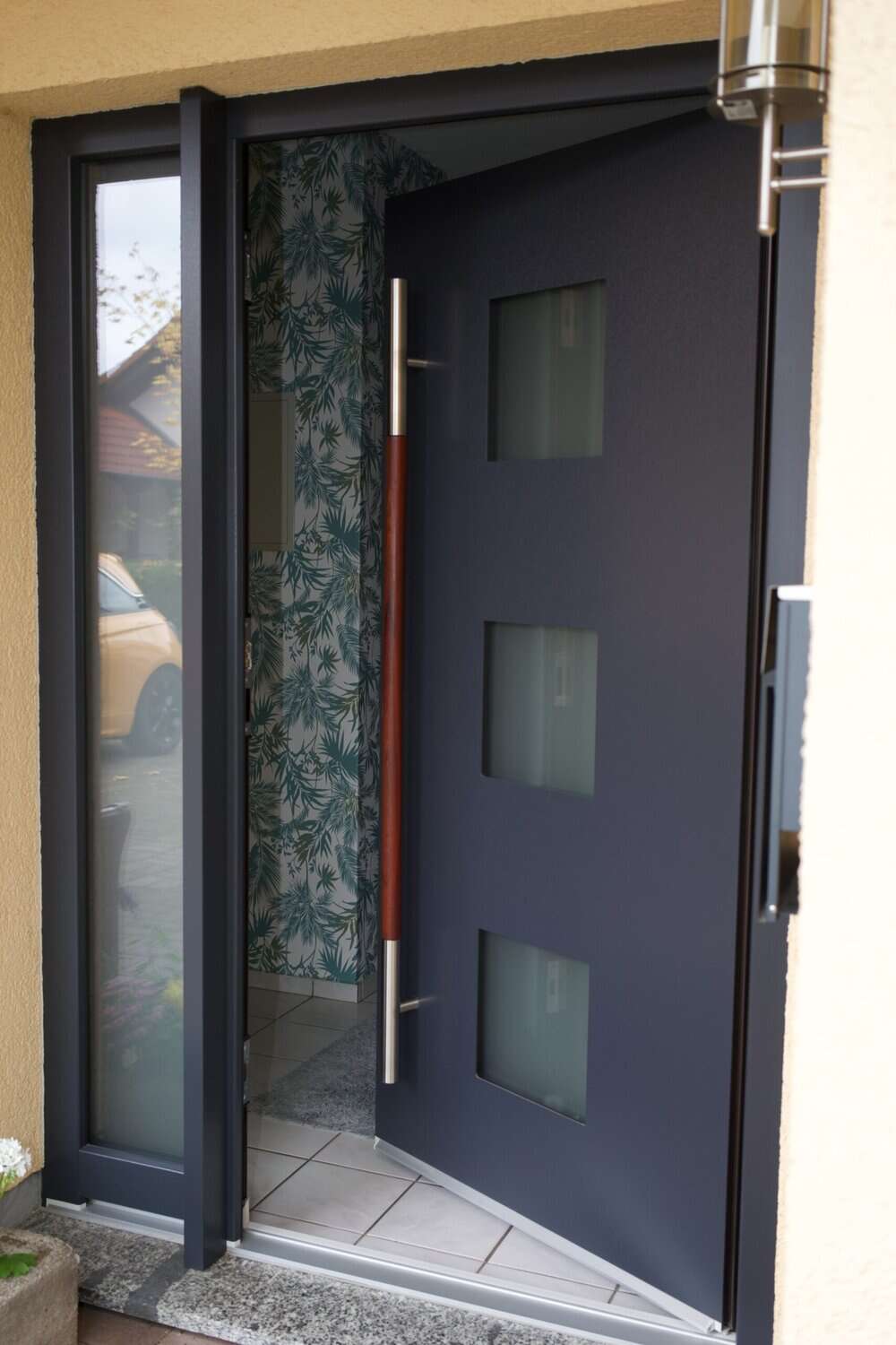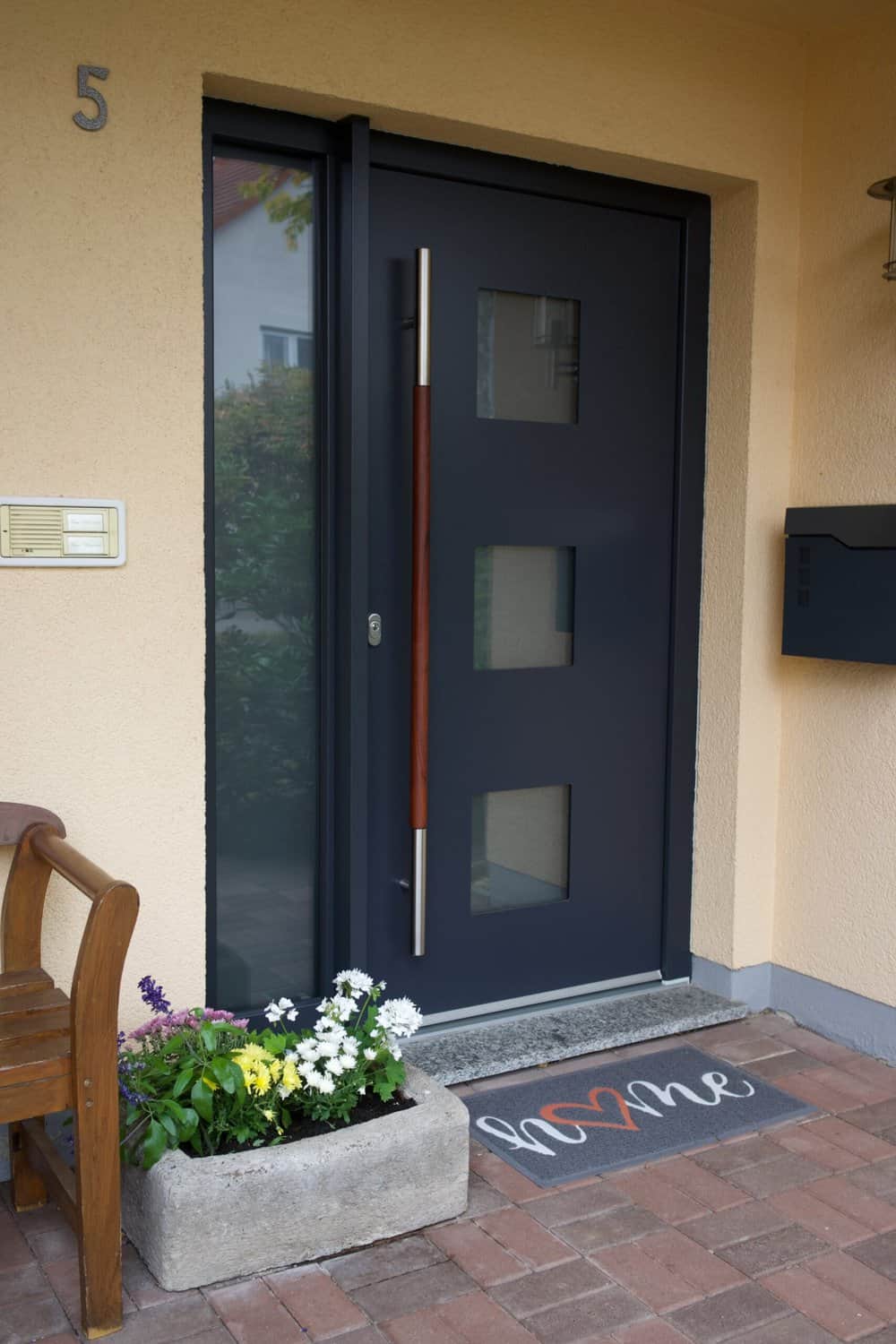 Bei diesem Projekt bauten wir eine hochwertige Haustür, dazugehörige Zargen und moderne Griffgarnituren ein.
